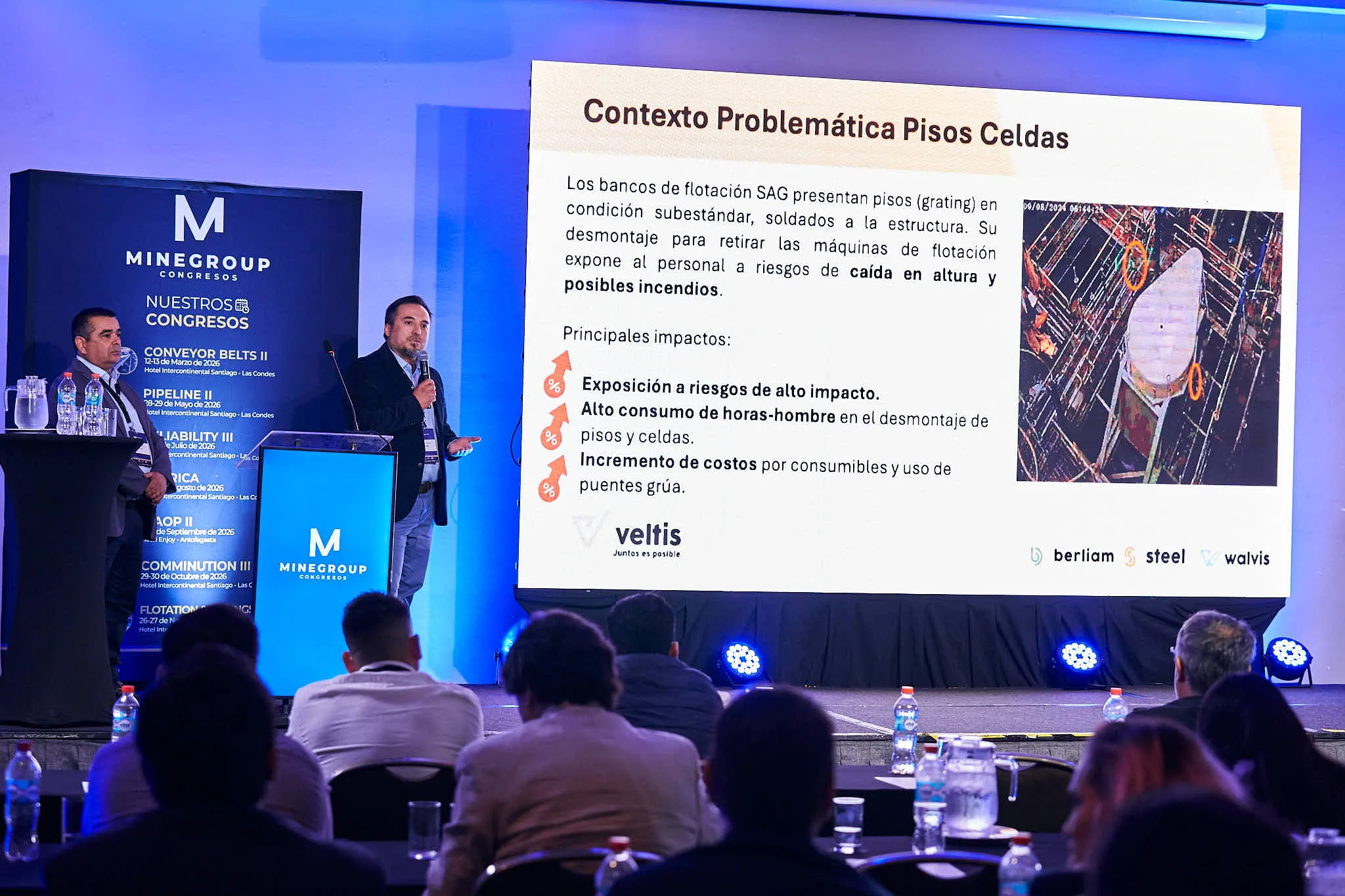 Durante el congreso se analizaron estrategias para la optimización del proceso de flotación, incluyendo control de variables operacionales, selección y dosificación de reactivos, eficiencia metalúrgica y estabilidad del proceso. Se presentaron experiencias aplicadas en plantas concentradoras orientadas a mejorar la recuperación, reducir pérdidas y asegurar la continuidad operacional.
