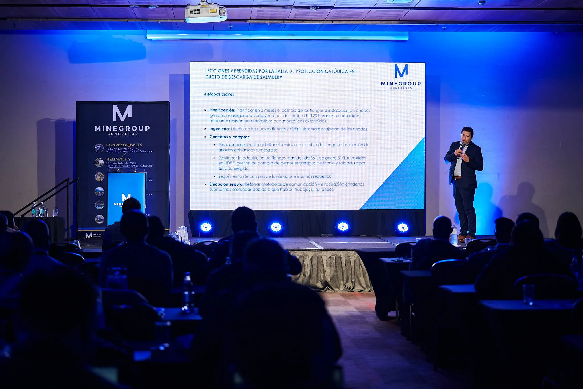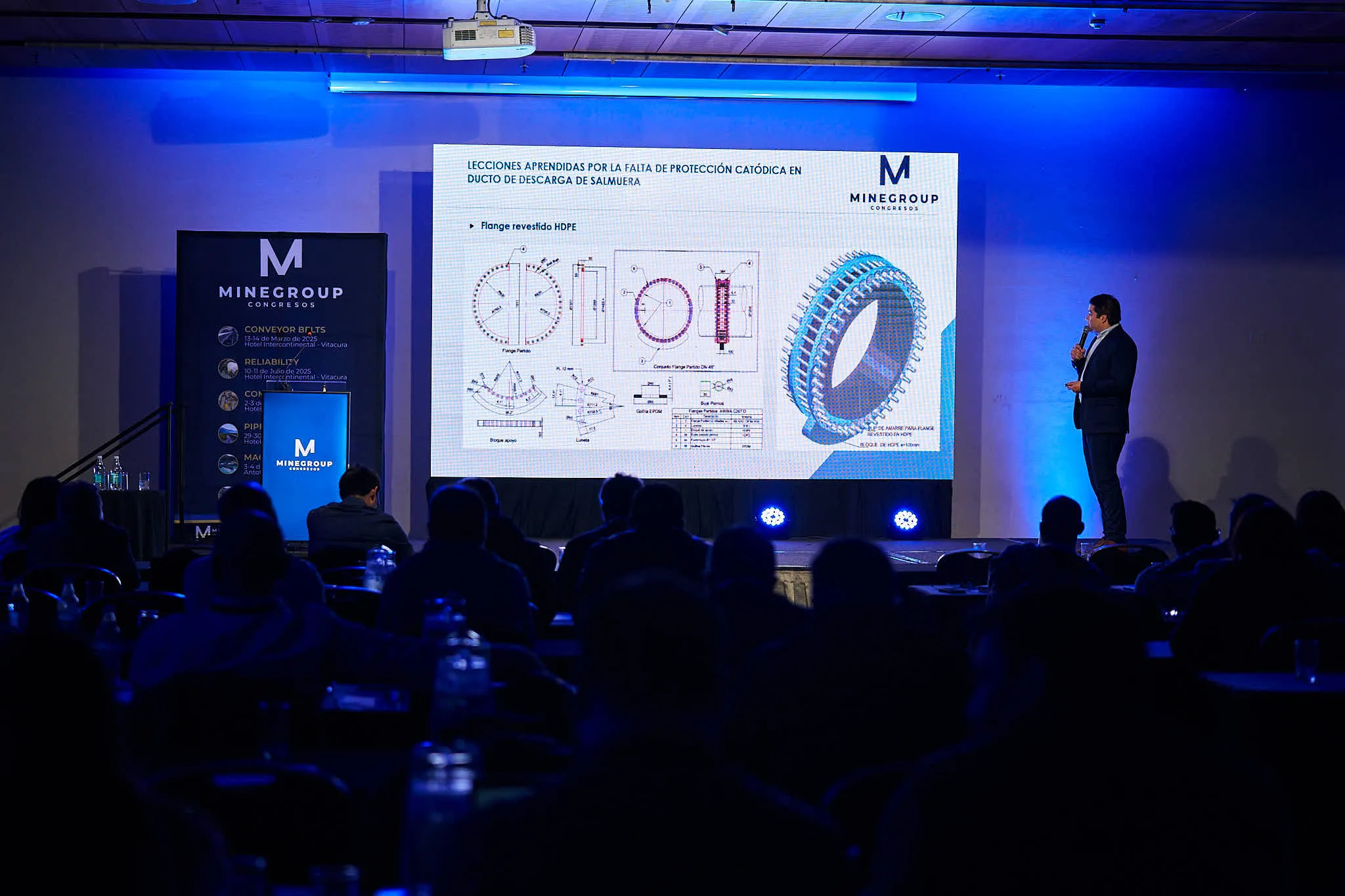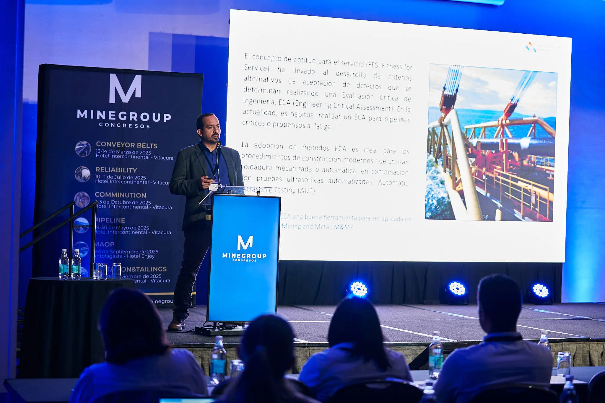 Este congreso abordó la Gestión del Transporte de Fluidos, con énfasis en optimizar redes de pipelines y bombeo en faenas mineras; incluyó Gestión de Activos para aplicar mantenimiento predictivo en equipos hidráulicos. Se presentaron técnicas de inspección en línea con sensores que midieron corrosión y espesores en tiempo real, junto a robots autónomos que detectaron fisuras y pérdida de metal sin detener la operación.